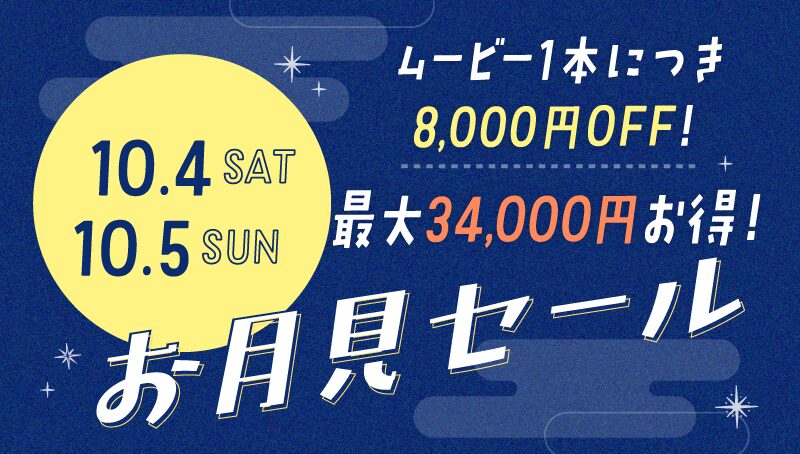 10月31日(金)まで各種ムービーが定価から5,000円OFFになるお得なSuperオータムセールを開催中ですが、さらに10月4日(土)・10月5日(日)は、ムービー1本につき3,000円OFFになる『お月見セール』を同時開催しています!