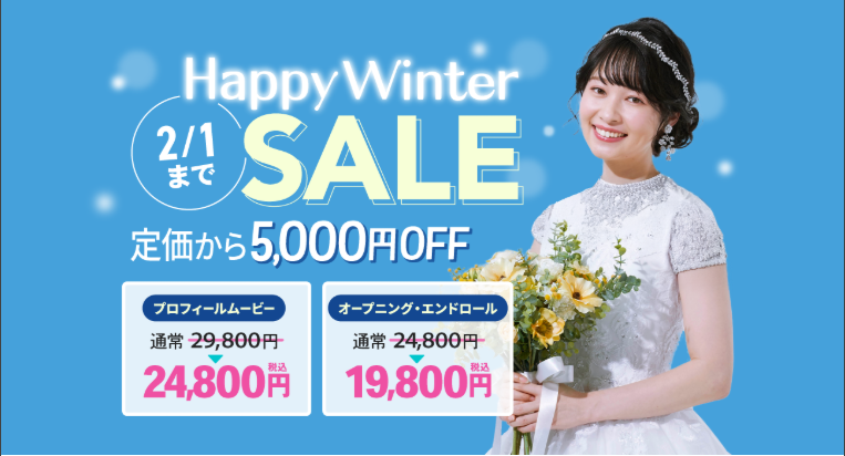 プロフィールムービーとセットでオープニングムービー、エンドロールが最大1万円引きとなるお得なキャンペーンです!